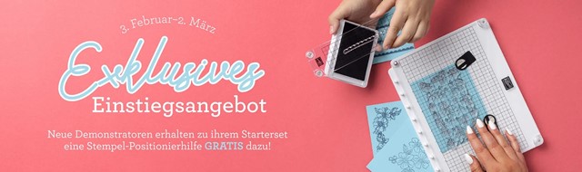 Für kurze Zeit gibt es beim Einstieg bei Stampin’ Up! zum Starterset eine Stempel-Positionierhilfe GRATIS dazu! Sie erhalten also Produkte im Wert von 175 € für nur 129 € (inklusive Versand sowie kostenloser Geschäftsmaterialien) UND unser neues Arbeitsmittel zum Stempeln.